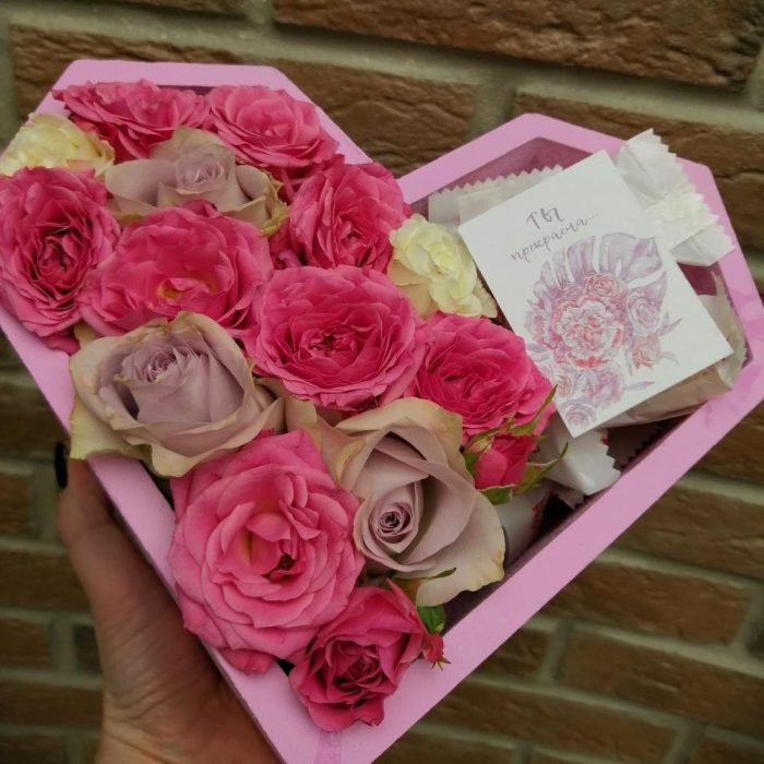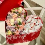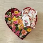 “Сладкое сердце ” – цветочная композиция с сладостями в коробке “Сердце”