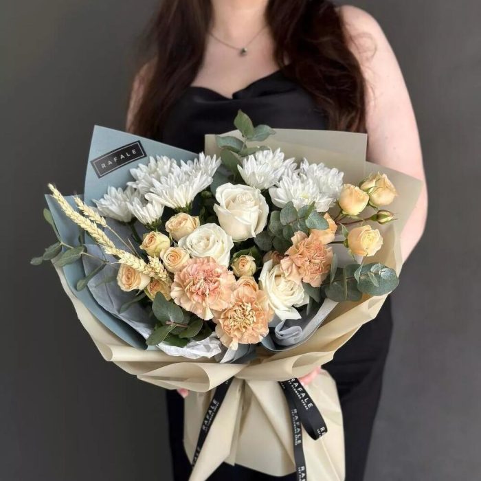 Категорий: Гвоздики, Диантус, Розы, Сухоцвет, Хризантемы, Эвкалипт