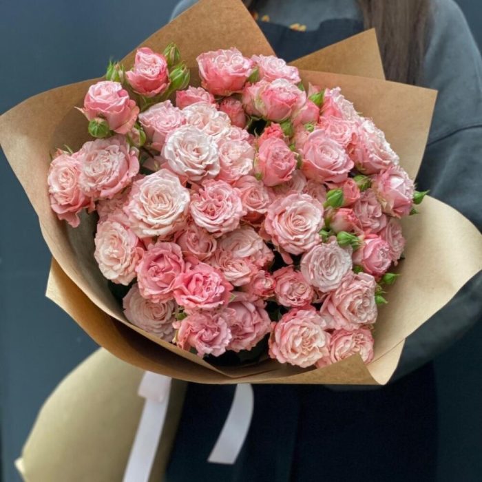 Кустовая роза – 15 шт. Упаковка дизайнерская – 1 шт. Открыточка с вашими пожеланиями – 1 шт.