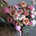 Кофе и зефир – Букет с пионами и пионовидными розами