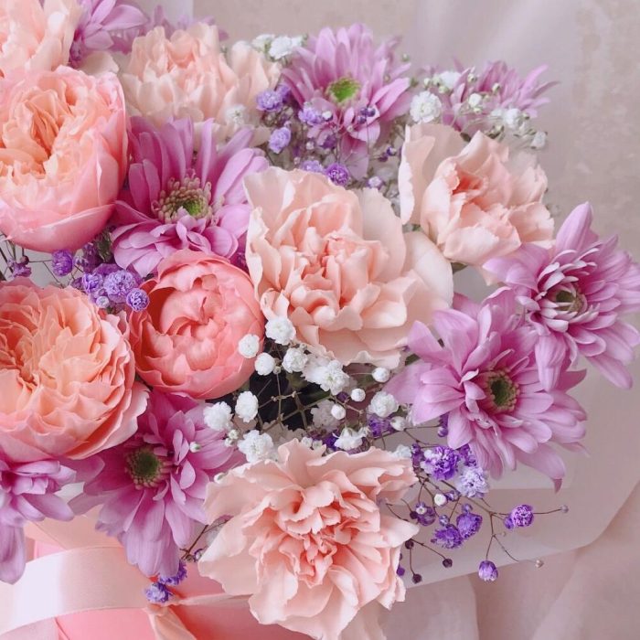 Категорий: Гвоздики, Гипсофила, Кустовые розы, Пионовидные розы, Розы, Хризантемы