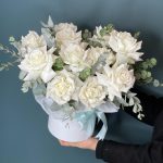 Композиция в шляпной коробке с розами “Белый вальс”