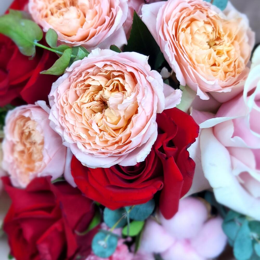 Французские персиковые розы с эвкалиптом