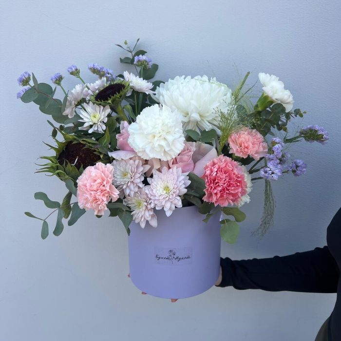 Коробка «Актрисе» (хризантемы, диантусы