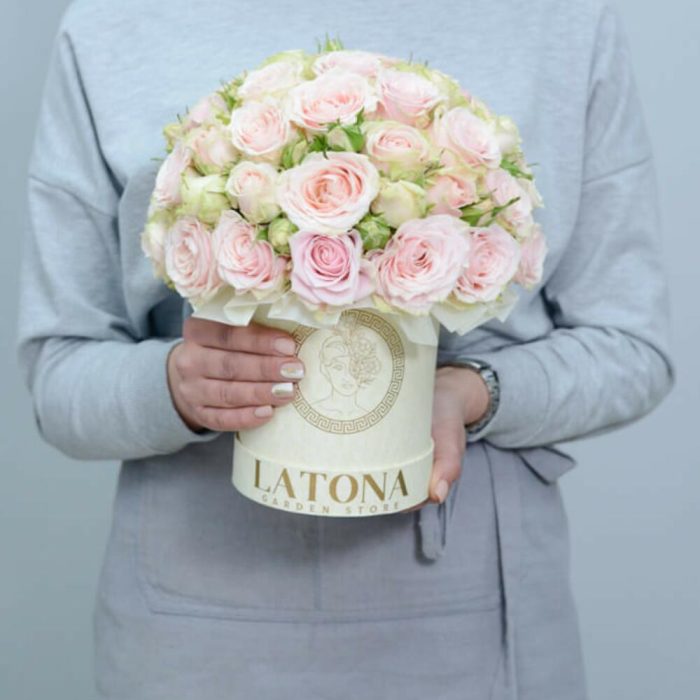 Коробка цветов ‹ABIGAIL› с кустовыми розами – Latona Flowers