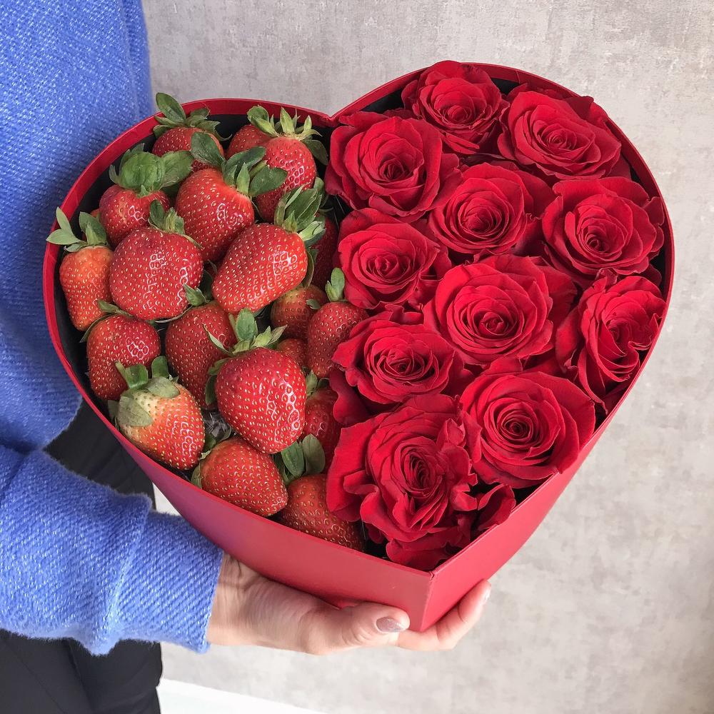Клубника – 50 шт.Роза – 11 шт.Коробка сердце – 1 шт.