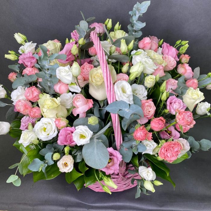 Корзина из пион роз и лизиантуса «Lady s»