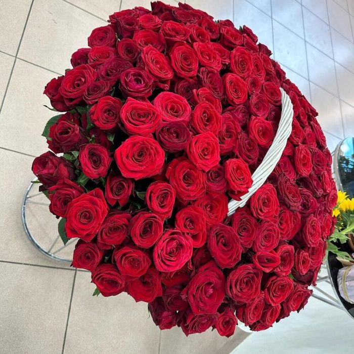 Метки: 151 роза, от 5000 руб, Роза 60 см, Розы в корзине, цветы в корзине