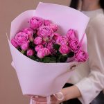 Букет кустовых пионовидных розовых роз «Очаровательной Леди»