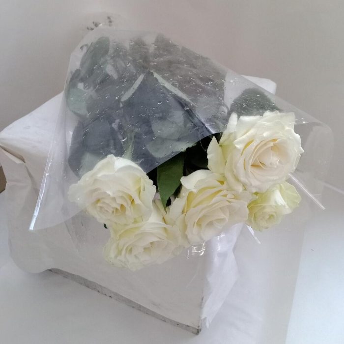 Пленка прозрачная – 1 шт.роза белая 70 см эквадор – 5 шт.