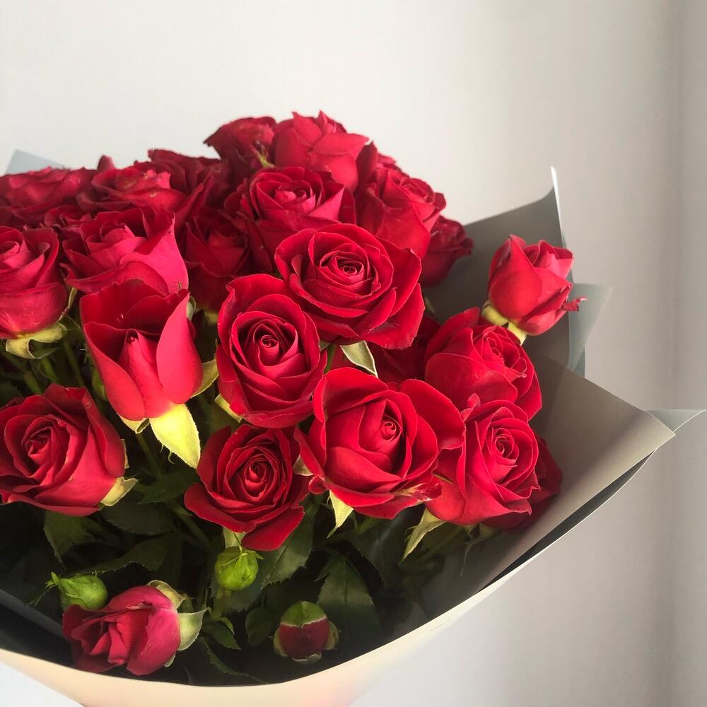 Моно букет из 9 штук красных кустовых роз