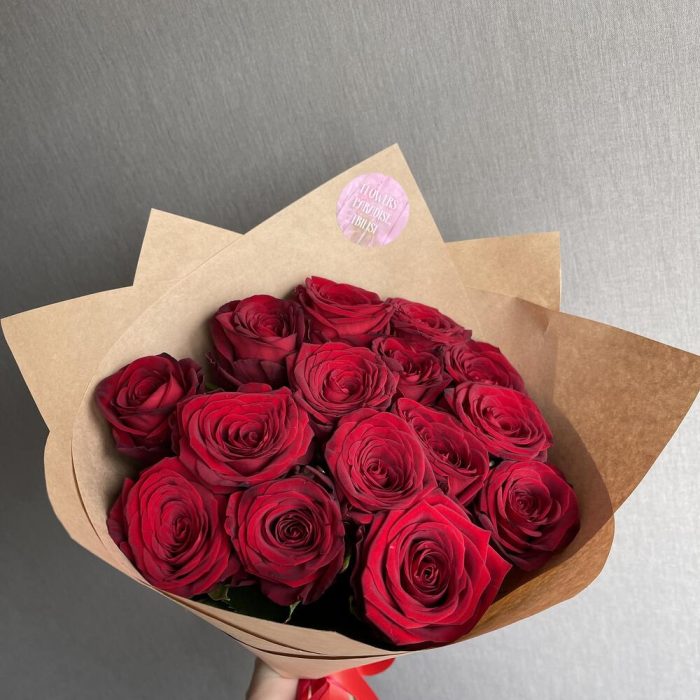 Монобукет из 15 красных роз в крафте