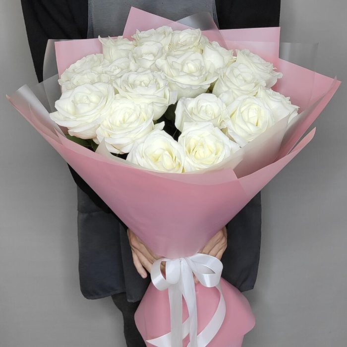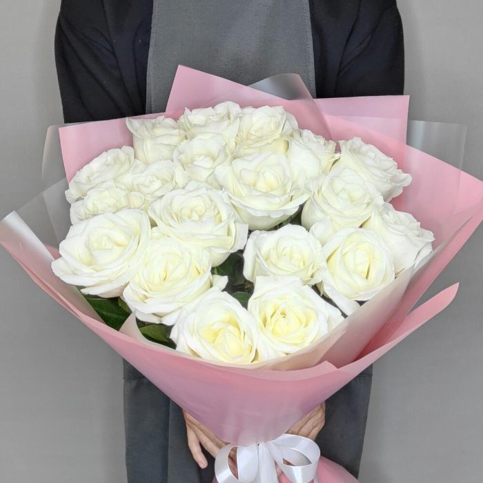 Монобукет из 19 белоснежных роз “Сентиментальность”
