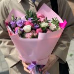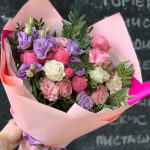 Эустома – 3 шт. Пионовидная кустовая роза – 2 шт. Писташ – 2 шт.