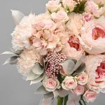 Нежный свадебный букет с пион розами и маттиолой