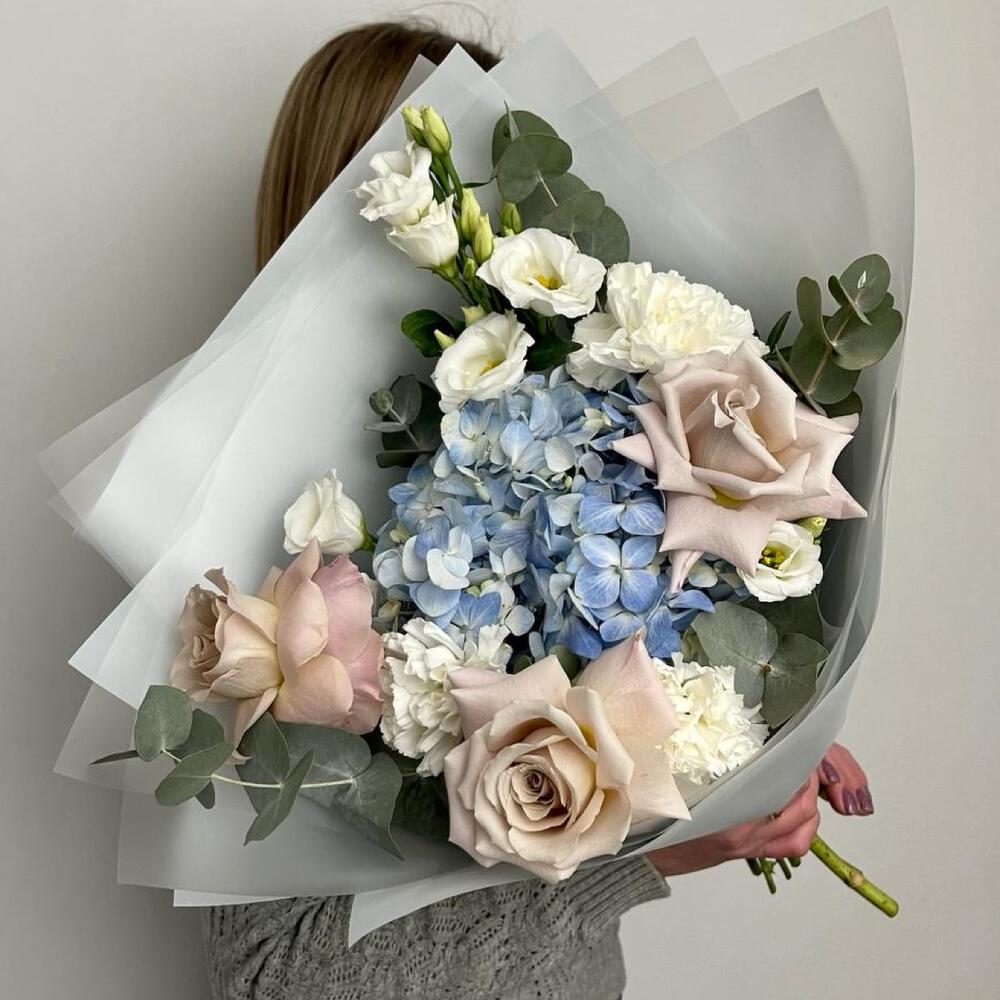 Гвоздики, Кустовые розы, Лизиантусы, Пионовидные розы, Розы