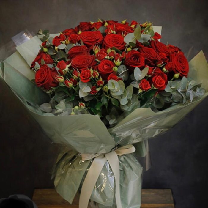Роза Эквадор – 15 шт. Роза кустовая – 9 шт.