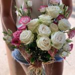 Розовые эустомы и белые розы