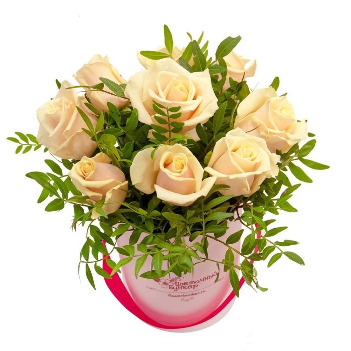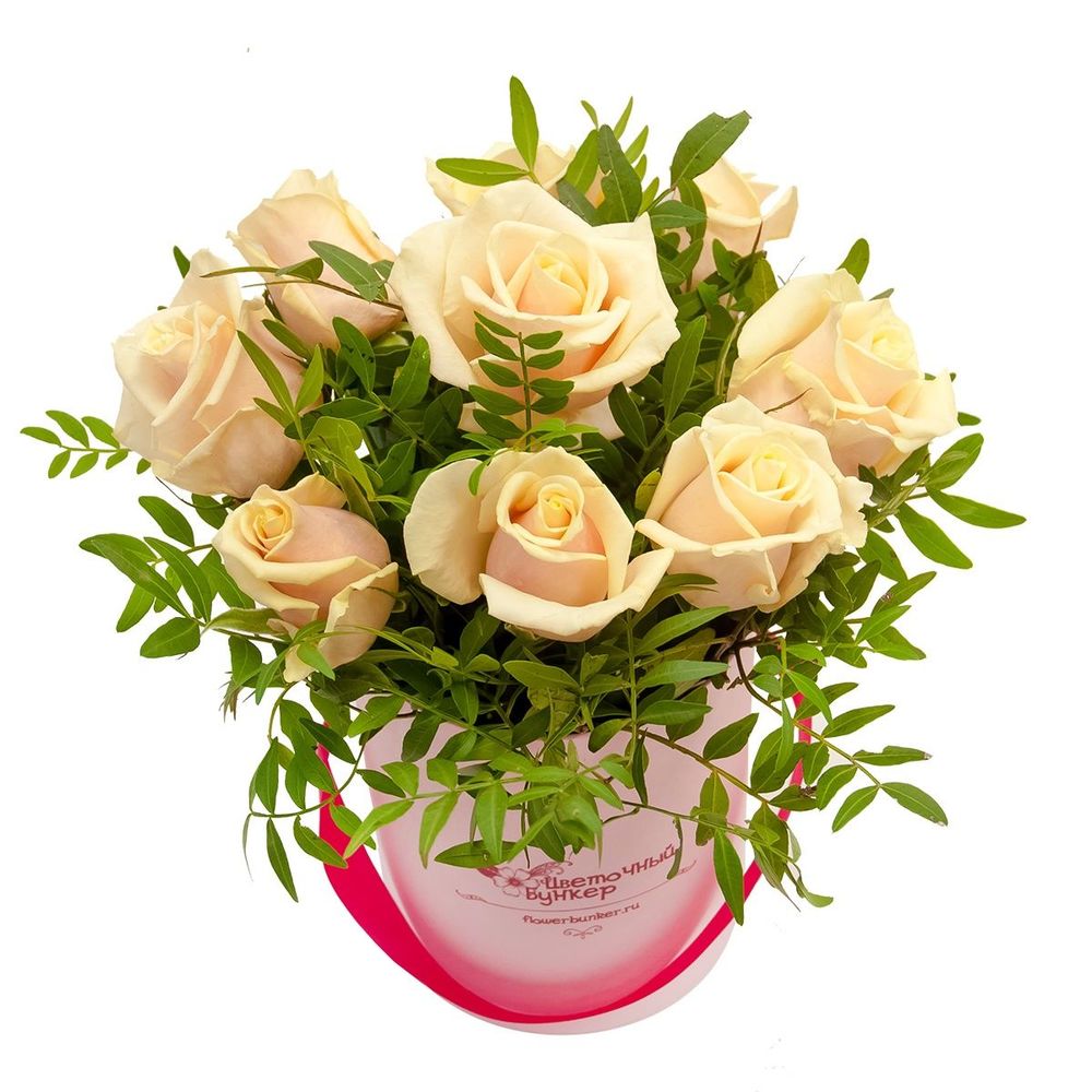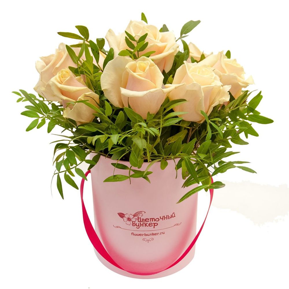 Роза кремовая – 9 шт.Фисташка – 3 шт.Коробка – 1 шт.