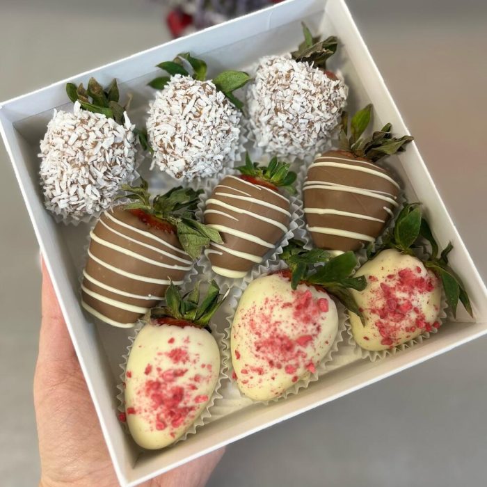 Шкатулка с цветами и клубникой в шоколаде «Розы микс»