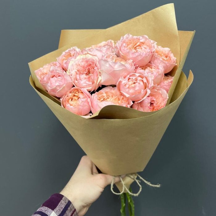 джульетта роза пионовидная – 5 шт.бечевка натуральная – 1 шт.крафт натуральный – 1 шт.