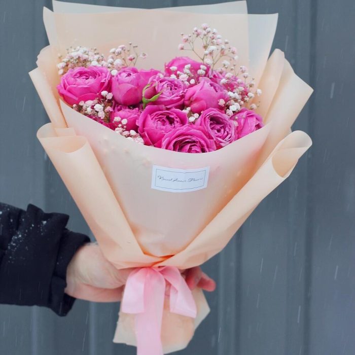 гіпсофіла біла – 1 шт. флористичне оформлення букета – 1 шт. рідина для букета у вазу – 1 шт. троянда кустовая спрей марвелоус баблз – 7 шт.