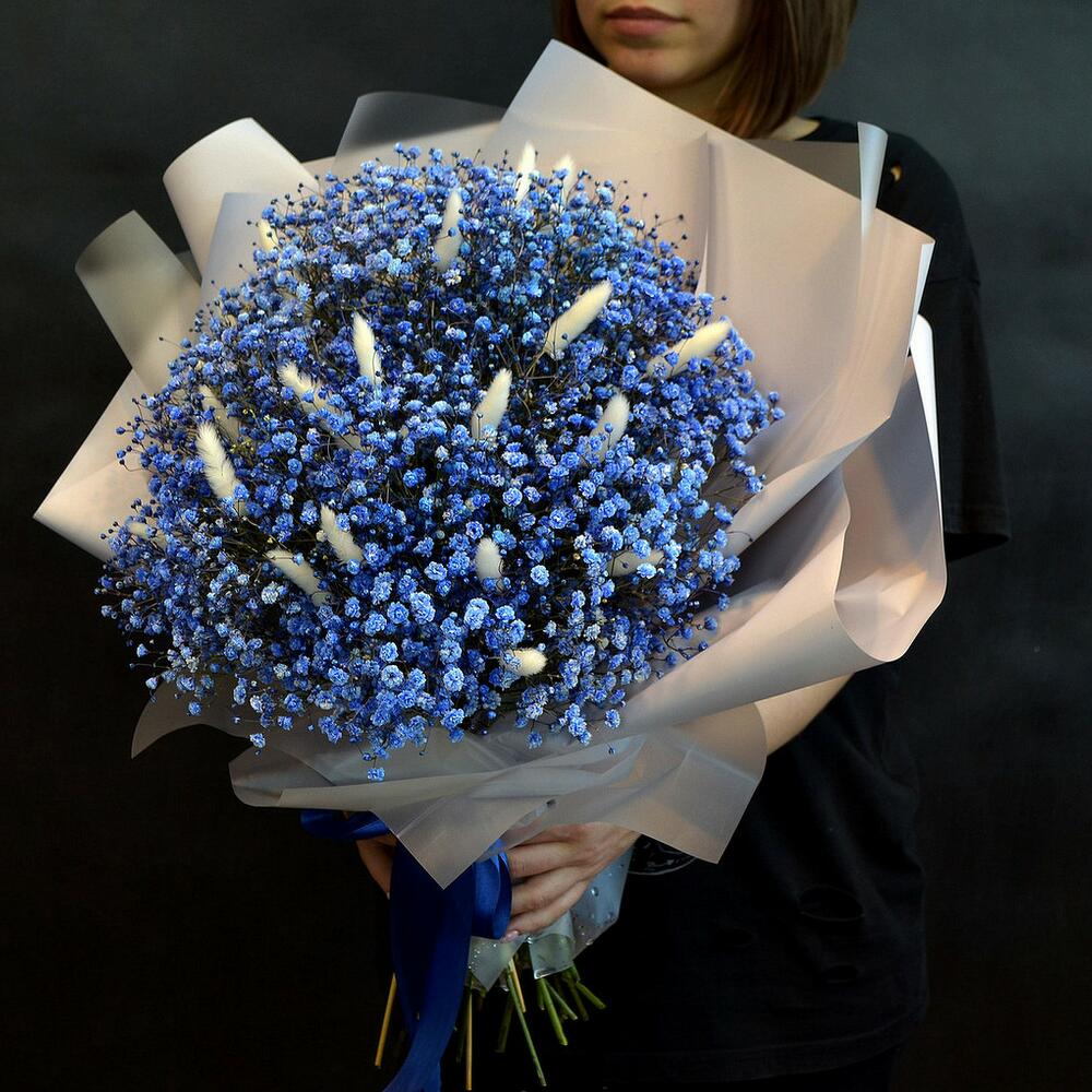 Гипсофила синяя – 13 шт.Лагурус белый – 20 шт.оригинальная упаковка букета – 1 шт.
