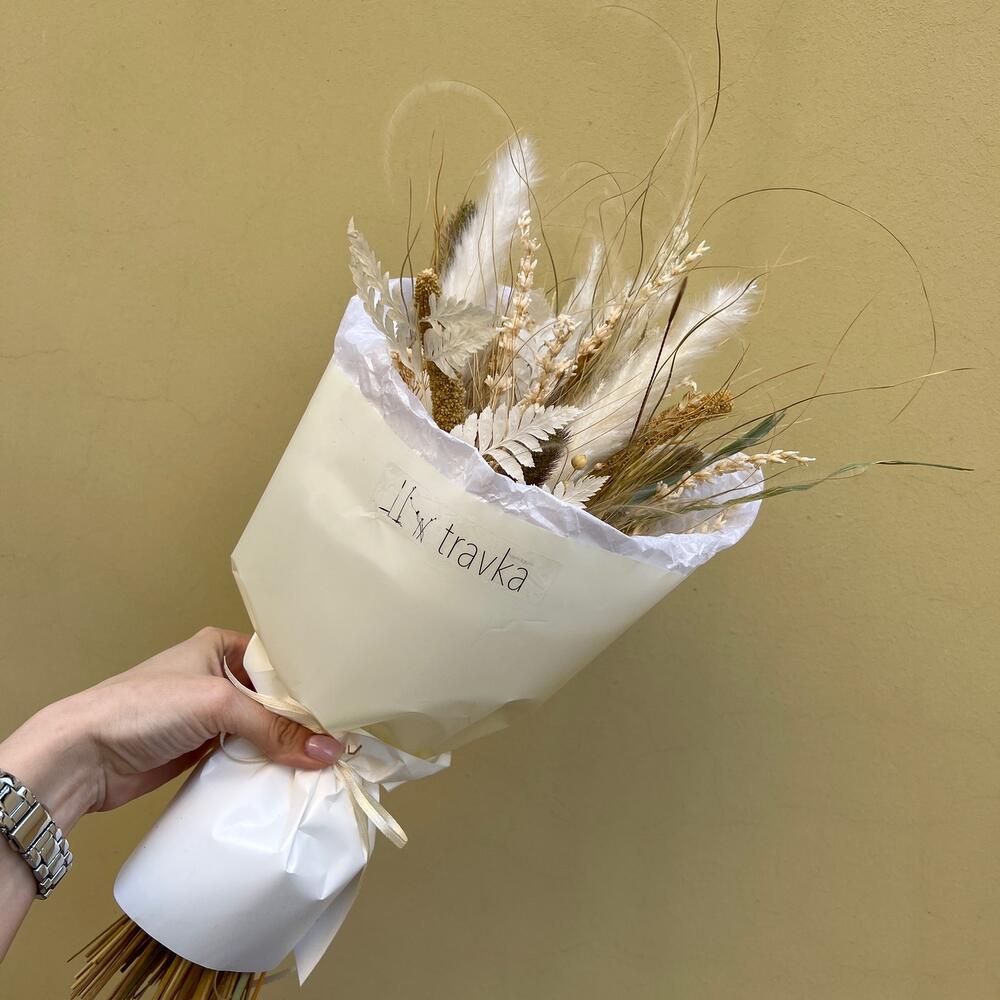 пушистики – 3 шт.Лаванда – 10 шт.Стифа – 5 шт.декор сухоцветы – 10 шт.Упаковка дизайнерская – 2 шт.