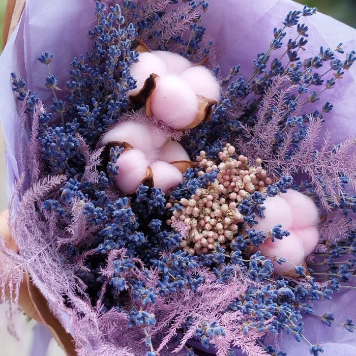 Букет из сухоцветов Лаванда с хлопком