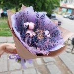 «Лавандовое созвездие» Букет из розы, гвоздики, статица и хлопка