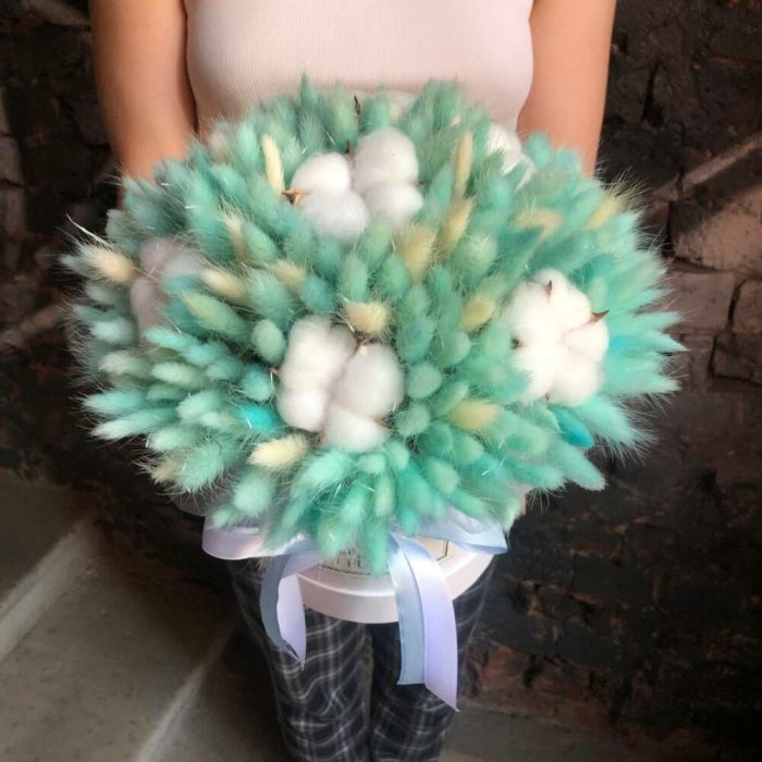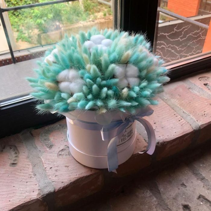 Шляпная коробка – 1 шт.Оазис – 1 шт.Лагурус – 230 шт.Хлопок – 7 шт.