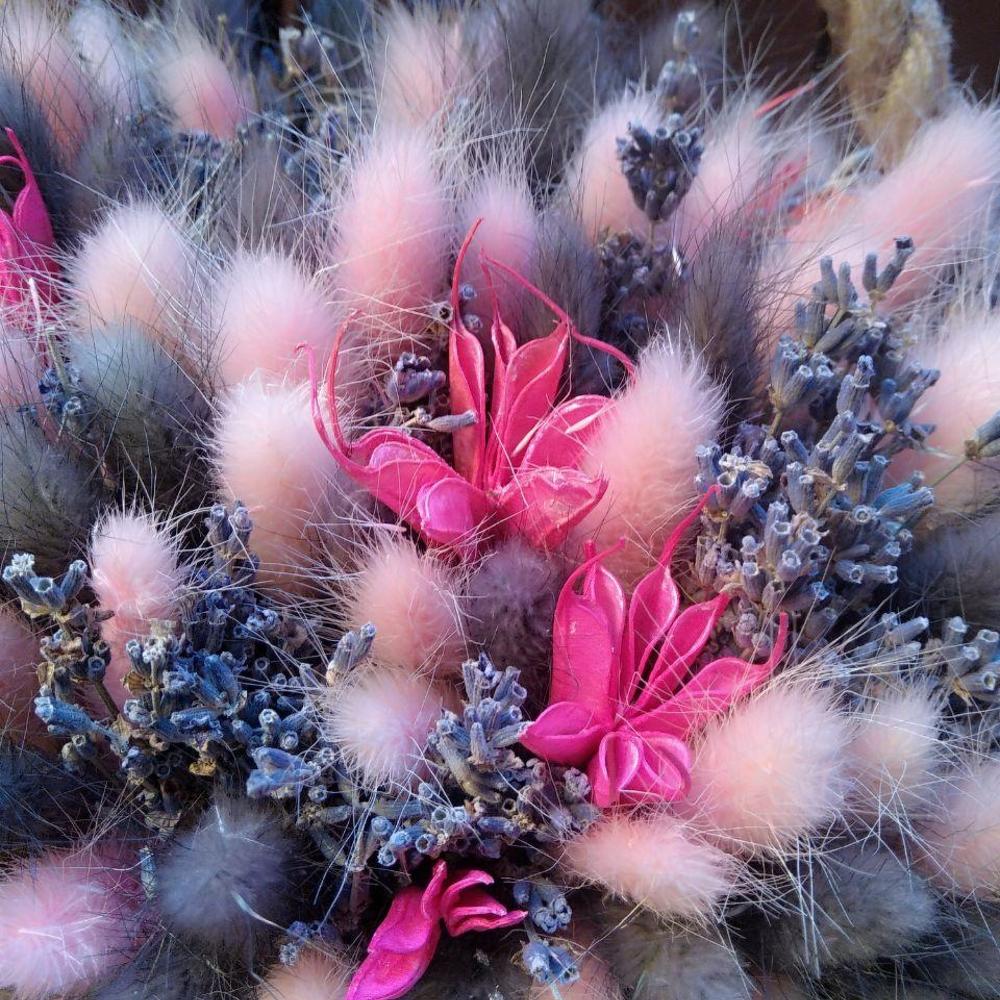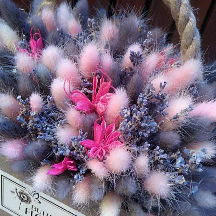 Букет из сухоцветов – лагуруса, лаванды и нигеллы в стильном деревянном ящике “Краски Майорки”
