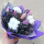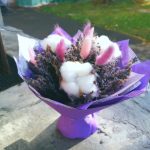 «Лавандовое созвездие» Букет из розы, гвоздики, статица и хлопка
