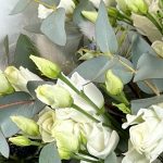 Букет с эустомой,пионовидными розами и гвоздикой