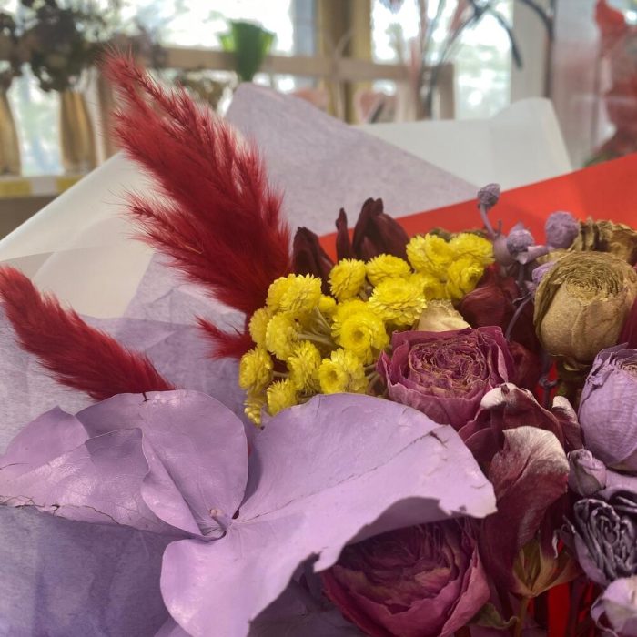 Сухоцветы – 25 шт.Упаковка – 5 шт.Лента атласная – 1 шт.