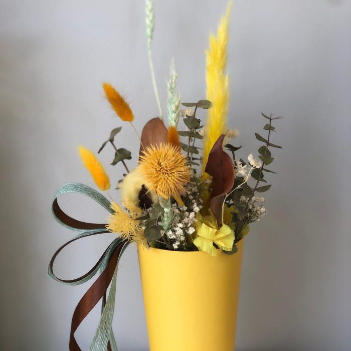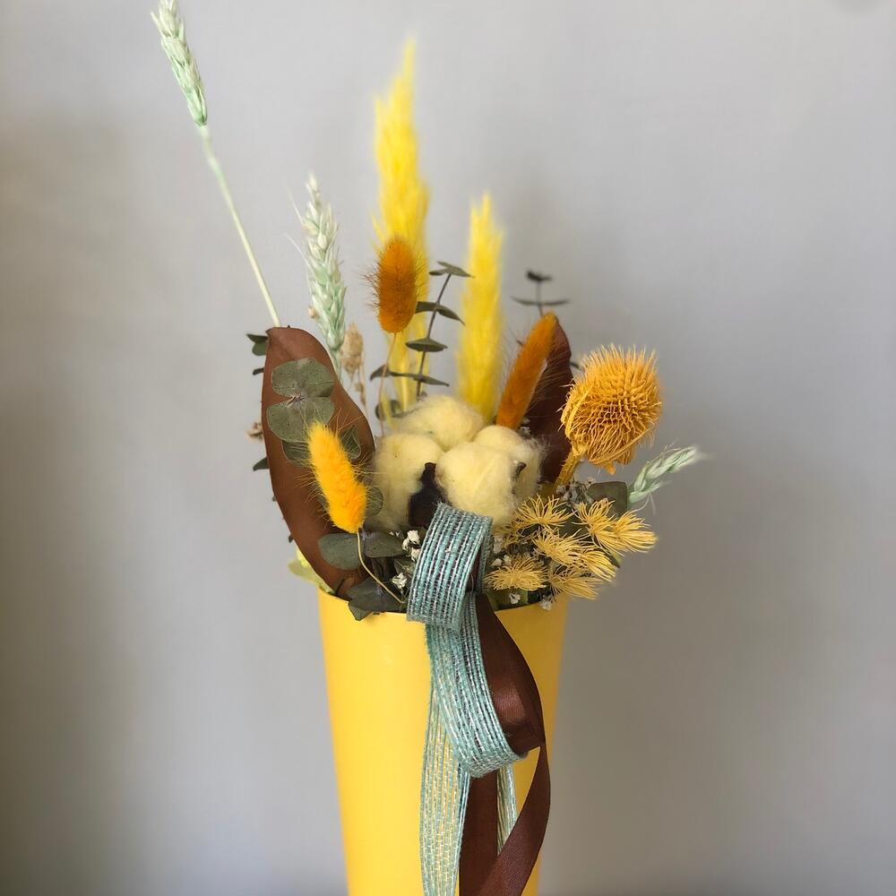 Стакан – 1 шт.Оазис для сухоцветов – 1 шт.Колоски пшеницы – 3 шт.Лагурус – 3 шт.аспарагус стабилизированный – 1 шт.Хлопок – 1 шт.ворсянка – 1 шт.камыш – 1 шт.Магнолия – 1 шт.Буплерум – 1 шт.Гипсофила – 1 шт.
