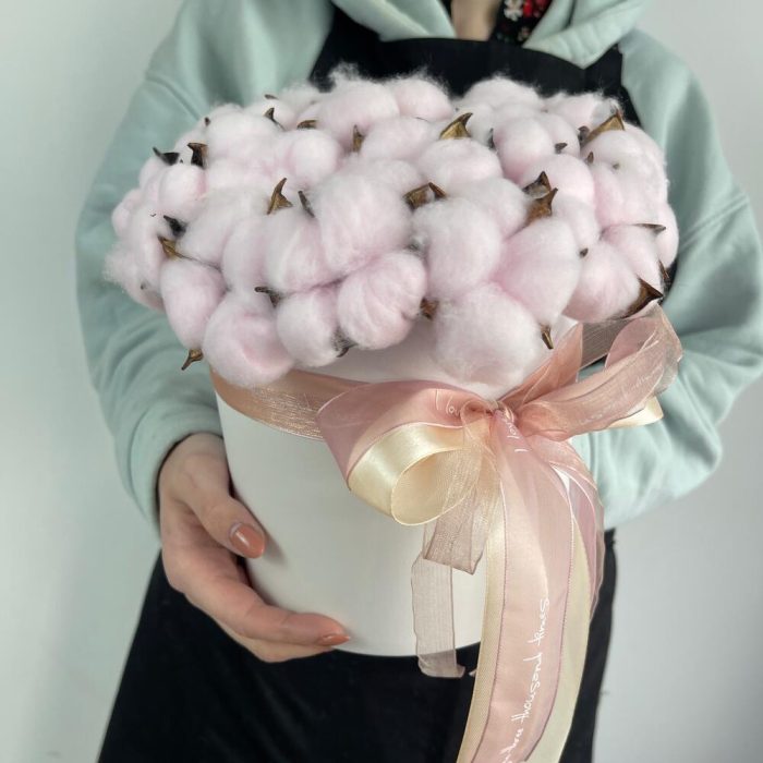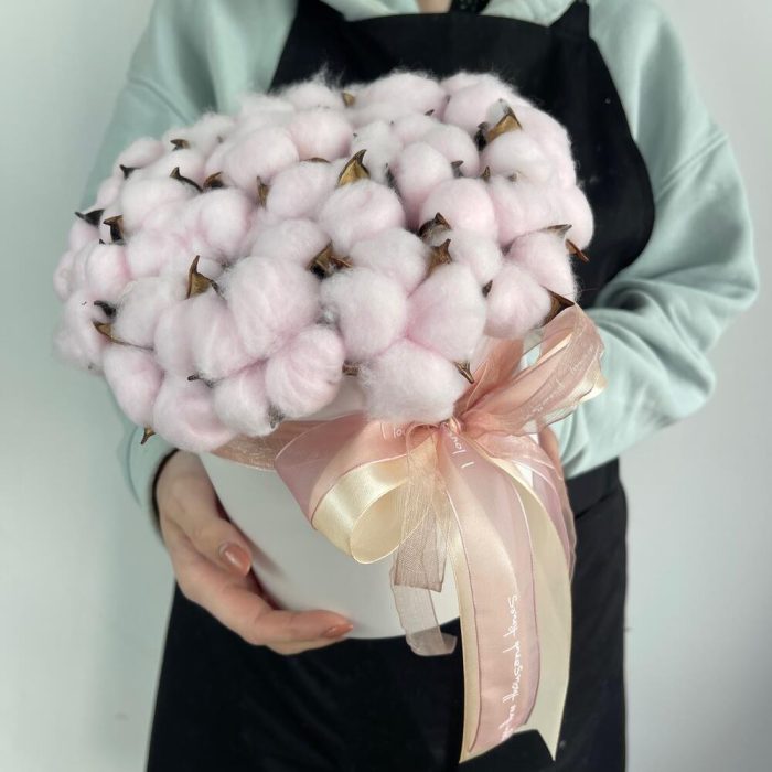 Хлопок – 21 шт.Коробка шляпная – 1 шт.Оазис флористический – 1 шт.