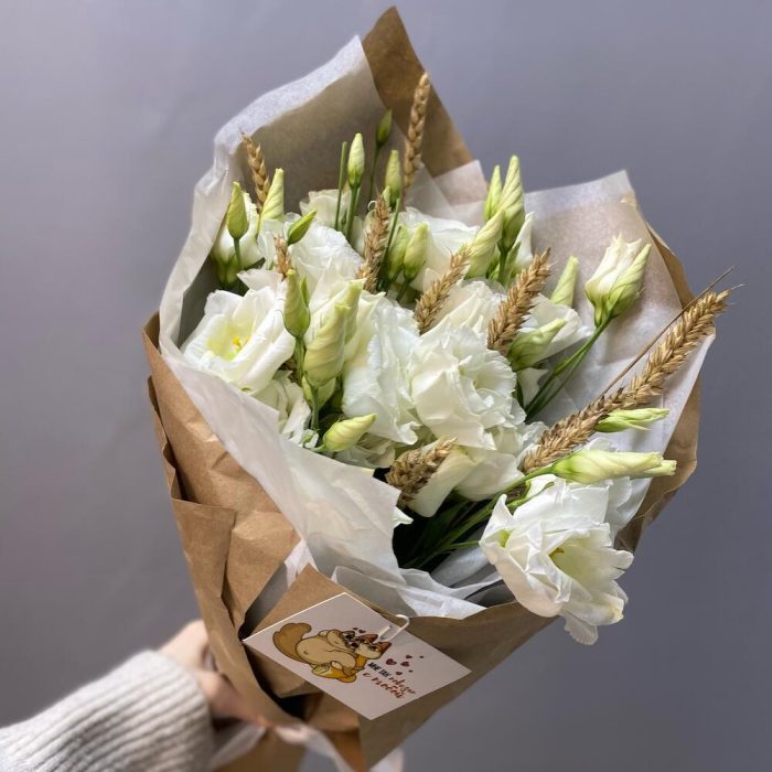 Лизиантусы с пшеницей в крафте