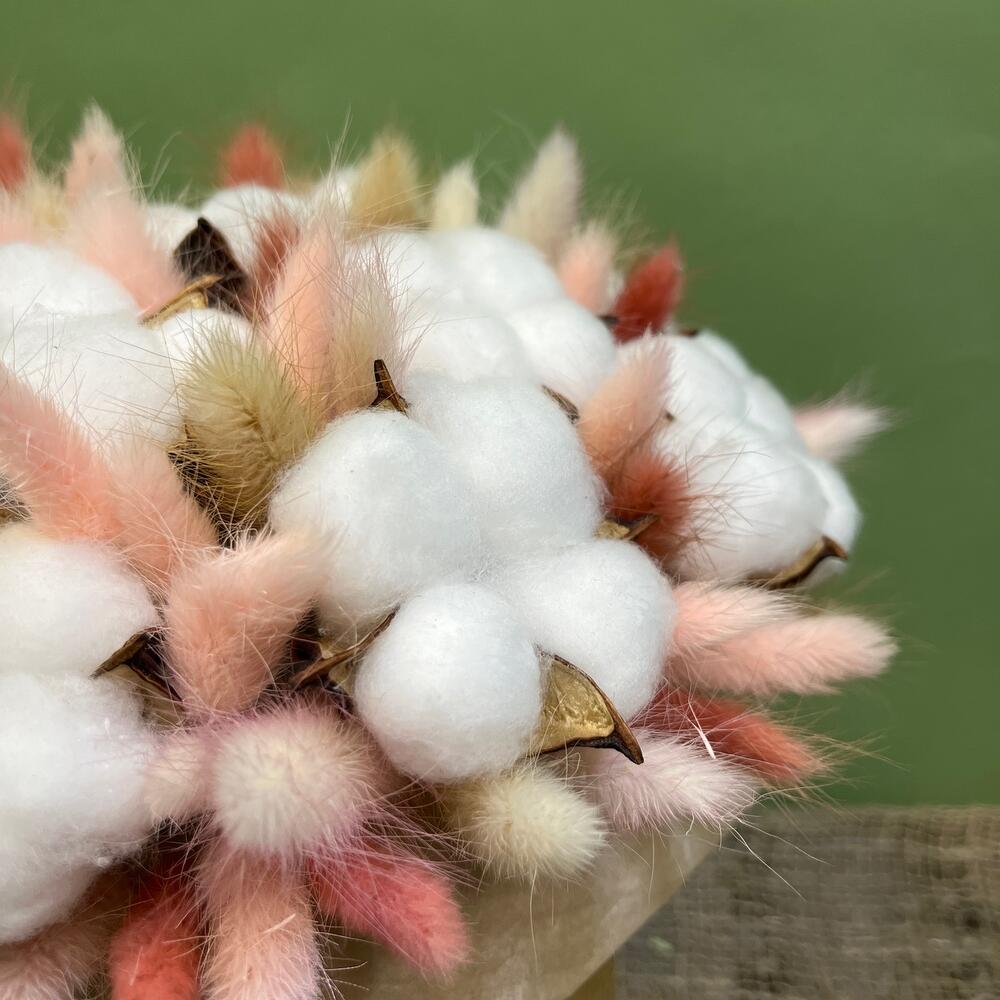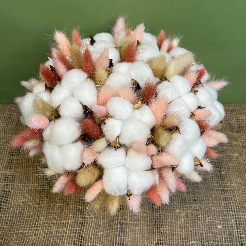 Тишью – 1 шт.Шляпная коробка – 1 шт.Оазис сухой – 1 шт.хлопок белый – 15 шт.банч лагуруса – 1 шт.