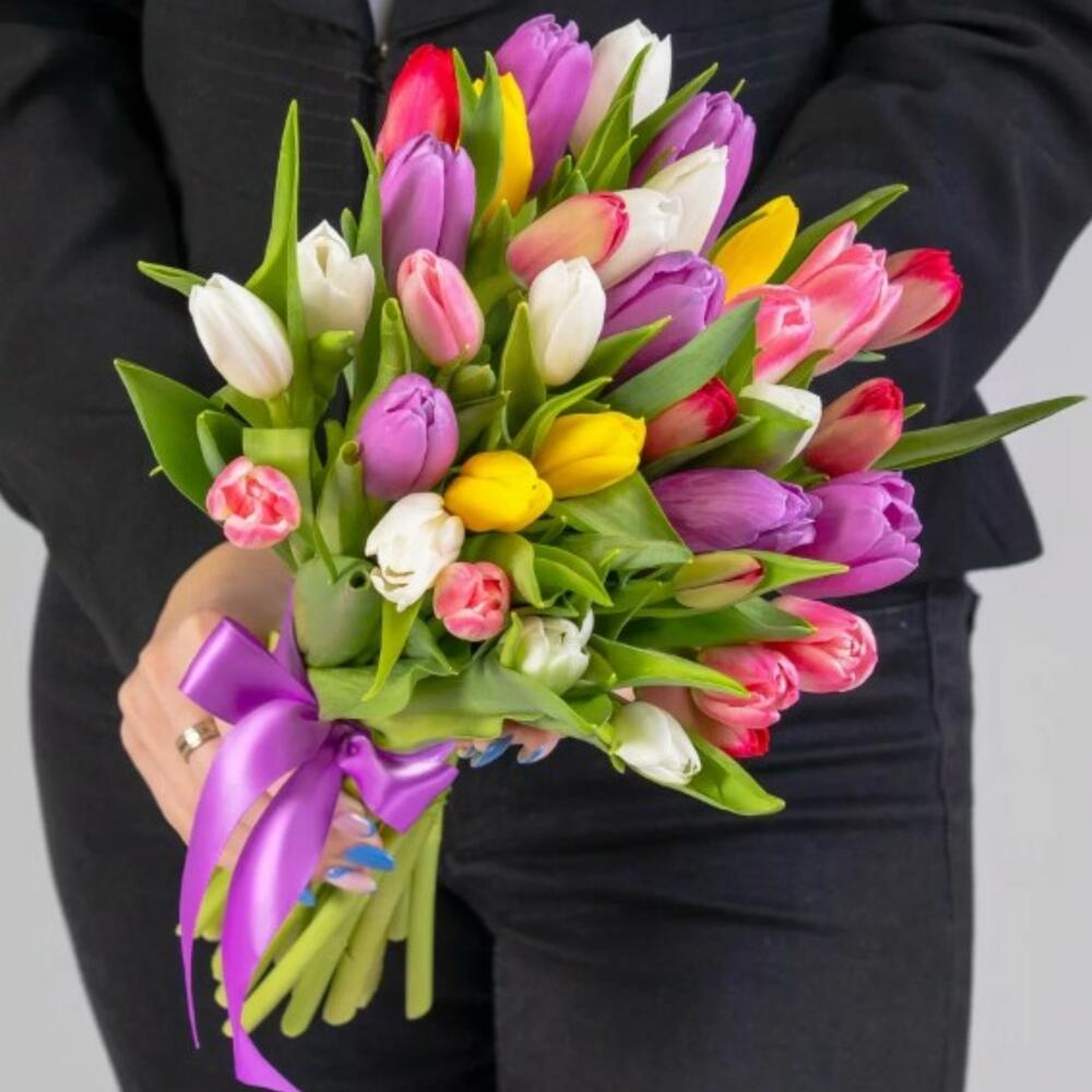 Букет из 35 Тюльпанов разноцветных