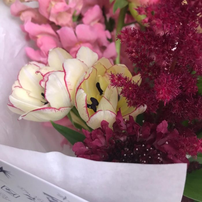 Пион – 2 шт.тюльпан кустовой фермерский – 4 шт.антиринум – 4 шт.Астильба – 3 шт.Скабиоза – 2 шт.