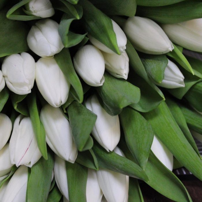 Лента атласная – 2 шт.Тюльпан белый (голландия) – 25 шт.Пленка дизайнерская – 2 шт.