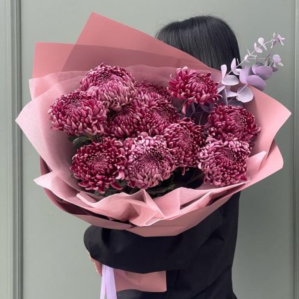 Хризантемы и Пионовидные кустовые розы в коробке + открытка ручной работы в подарок